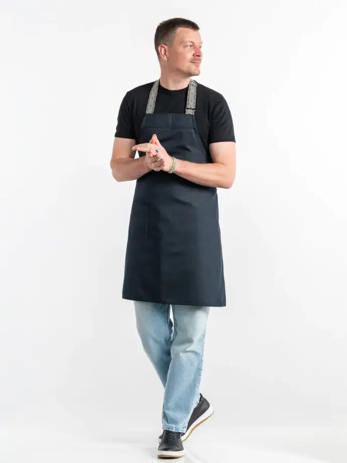 Diep blauw met een bohemien twist; deze Bohemian Bib Apron is een stijlvolle toevoeging aan iedere horecagarderobe!