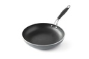 Anti-aanbaklaag. Lange, koelblijvende handgreep van roestvast staal. Handgreep bevestigd met klinknagels.